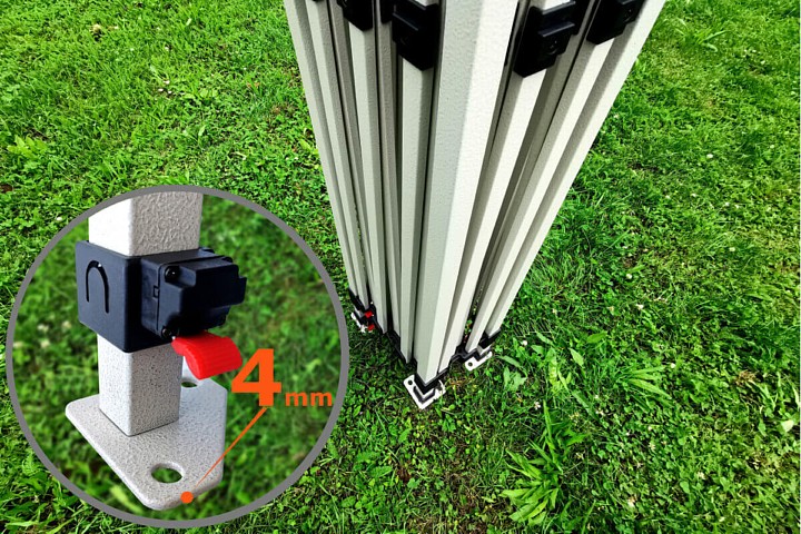- Αντοχή στον άνεμο: Το μοντέλο από σούπερ ατσάλι αντέχει σε ανέμους έως 40 km/h. Τα πόδια της κατασκευής διαθέτουν οπές για σταθερή αγκύρωση. Θα λάβετε τους πασσάλους αγκύρωσης εντελώς δωρεάν μαζί με τη σκηνή για τη μέγιστη ασφάλειά σας.