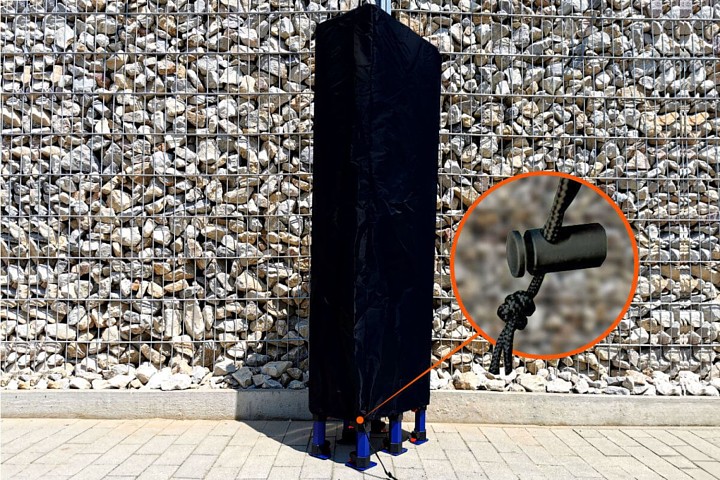 Το μεγαλύτερο βάρος του κιόσκι βοηθά στη διατήρησή του στη θέση του κατά τον άνεμο. Μην ξεχνάτε να το αγκυρώνετε με πασσαλάκια σε μαλακό έδαφος ή να το βαραίνετε με ατσάλινα βάρη ή σακούλες με άμμο. Μην αφήνετε το κιόσκι χωρίς επίβλεψη σε ισχυρούς ανέμους.
