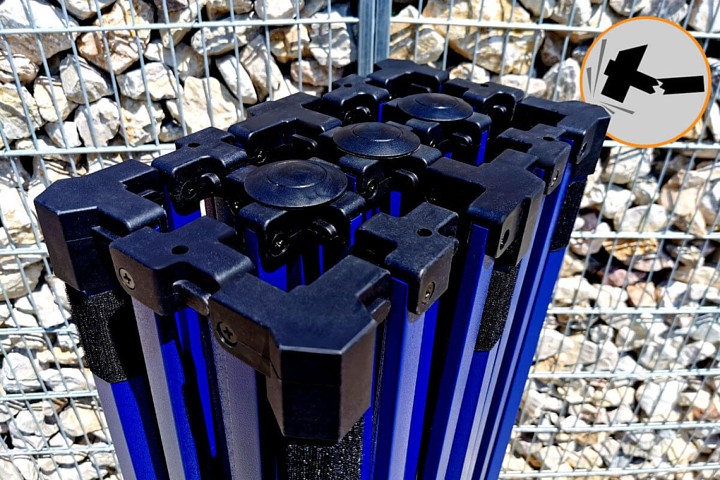 Το χρώμα του σκελετού είναι βασιλικό μπλε. Αυτό το χρώμα προσδίδει αποκλειστική εμφάνιση σε ολόκληρο το κιόσκι. Διαφέρει από τον ανταγωνισμό και είναι κάτι νέο στην αγορά – κάτι που όλοι θέλουν να έχουν. Πιστεύουμε ότι κάθε επιχειρηματίας θέλει να ξεχωρίζει από το πλήθος, γι’ αυτό και προσθέσαμε αυτό το αποκλειστικό κιόσκι με την ασυνήθιστη χρωματική κατασκευή στην προσφορά μας.