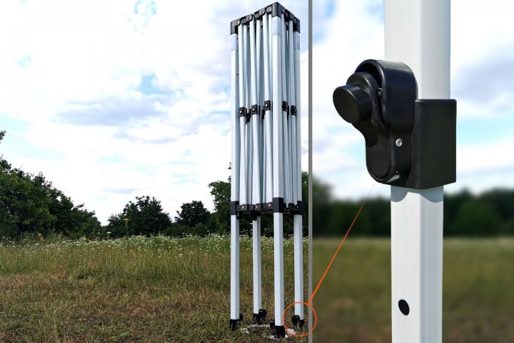 - Αστραπιαία συναρμολόγηση: Ένα άτομο μπορεί να στήσει και να ξεστήσει την τέντα σε μόλις 40 δευτερόλεπτα! Εξοικονομήστε πολύτιμο χρόνο και ενέργεια σε κάθε εκδήλωση – ο χειρισμός είναι γρήγορος και εντελώς ξεκούραστος.