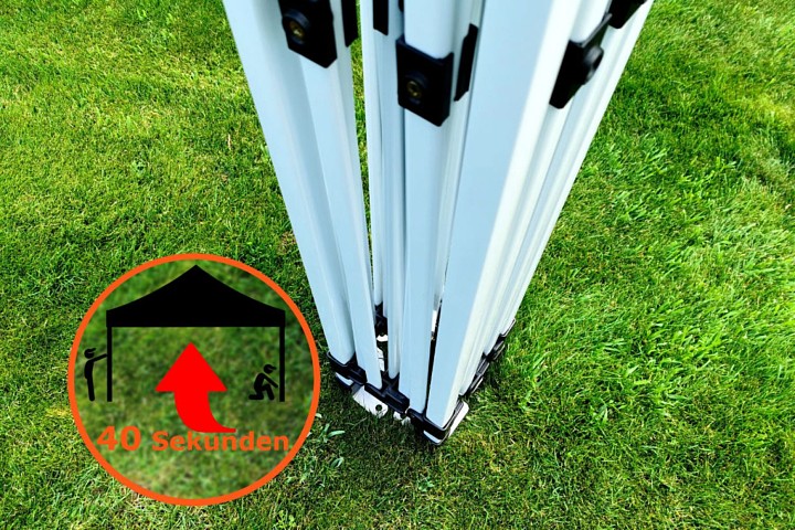 - Χρόνος ανάπτυξης και αναδίπλωσης του κιόσκι από ένα άτομο: 40 δευτερόλεπτα.