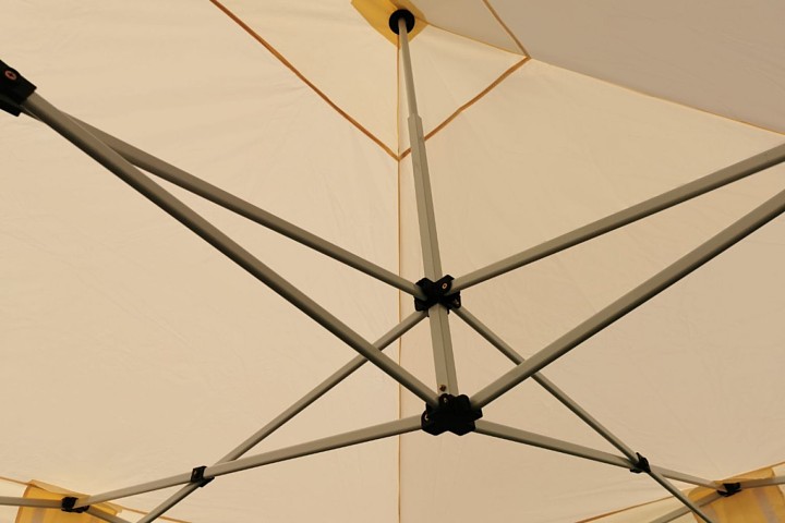 Ο πυκνός πολυεστερικός ιστός είναι η καρδιά της τέντας. Η εσωτερική στρώση της οροφής PVC δημιουργεί ιδανική σκιά. Κάθε σύνδεση είναι επιπλέον ενισχυμένη, το κιόσκι είναι 100% αδιάβροχο. Πτυσσόμενο κιόσκι είναι επίσης ιδανικό για την αποθήκευση προϊόντων σε εκθέσεις, αν όλα τα προϊόντα σας δεν χωρούν στους χώρους παρουσίασης, μπορείτε να τα αποθηκεύσετε με ασφάλεια σε ένα γειτονικό κιόσκι.