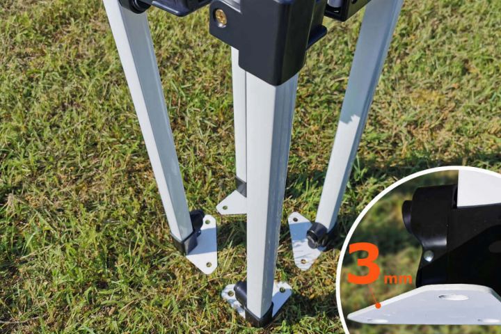- Αντοχή στον άνεμο: Το μοντέλο από σούπερ ατσάλι αντέχει σε ανέμους έως 40 km/h. Τα πόδια της κατασκευής διαθέτουν οπές για σταθερή αγκύρωση. Θα λάβετε τους πασσάλους αγκύρωσης εντελώς δωρεάν μαζί με τη σκηνή για τη μέγιστη ασφάλειά σας.