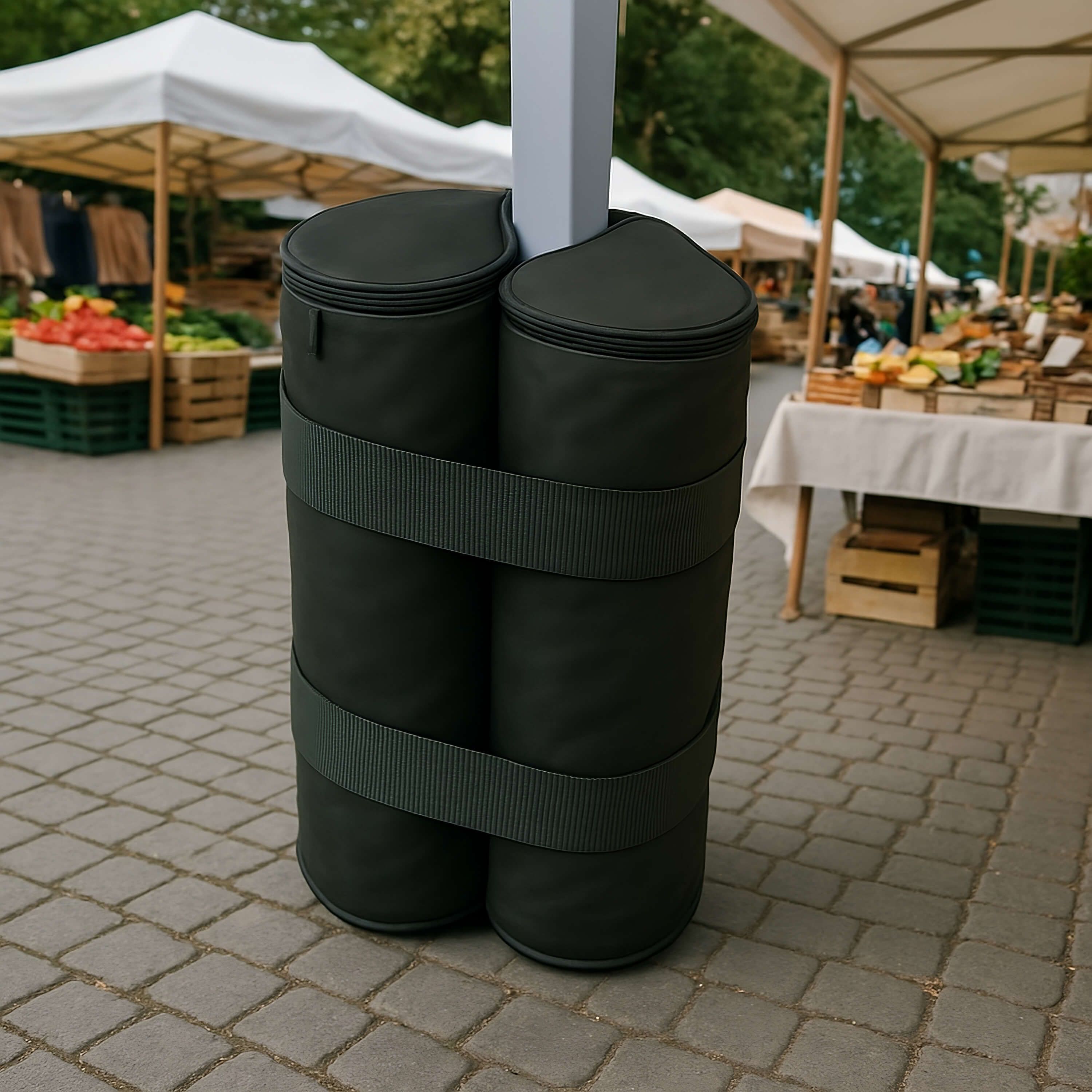Οι σακούλες με άμμο είναι μια πρακτική λύση για τη βάρυνση της σκηνής σε σκληρές επιφάνειες. Οι σακούλες είναι διπλές, γεμάτες με άμμο ή χαλίκι. Το βάρος μετά την πλήρωση είναι 14 kg. Πωλούνται σε σετ των 4 και 6 τεμαχίων. Το ύφασμα είναι ανθεκτικό στους κραδασμούς. Το εσωτερικό των σακουλών είναι επικαλυμμένο με λάστιχο, διασφαλίζοντας ότι η άμμος δεν θα χυθεί από τις σακούλες.